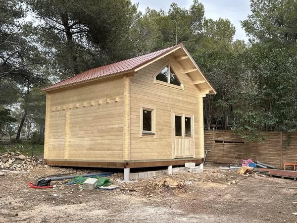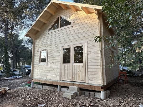 Chalet Mezzanine Narbonne 25m² en RDC + 25m² en R+1 pour un total habitable de 50m² avec une épaisseur des murs 70 Contre-Collé